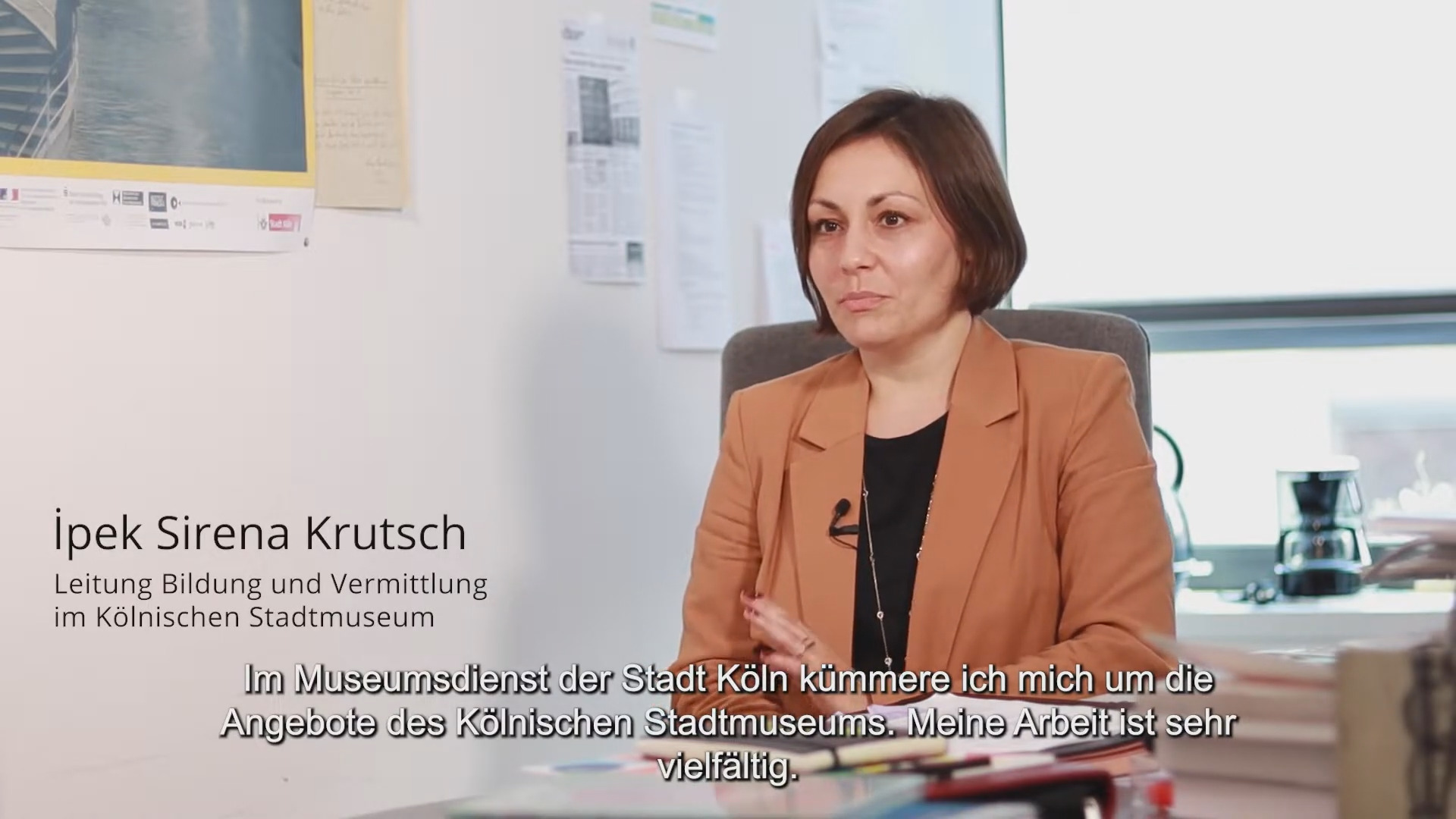 Köln Müze Hizmetleri ve Köln Şehri Belediye’sinin Yerel Entegrasyon Merkezi ile işbirliğinde, Köln şehir müzelerinde veya şehir müzeleri için çalışan ve aynı zamanda Türkçe konuşan üç kişiyle röportaj yaptı. Bu üç kişi, müzeyle veya müzede bulunan objelerle ilişkilerini ve çok dilliliklerini çalışmalarında nasıl kullandıklarını üç kısa filmde anlatıyor.