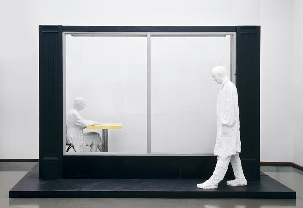 Museum LudwigEine Alltagsszene, so banal wie ergreifend: Eine Frau hinter Glas, im kühlen Neonlicht – allein am einzigen Tisch eines Restaurants. Draußen, vor der breiten Fensterfront trottet ein Passant vorüber. Teilnahmslos und in sich gekehrt. Die Glasscheibe wird zur unüberwindbaren Schwelle zwischen Drinnen und Draußen. Die Szenerie – ein eingefrorener Moment im Großstadtgewimmel, ein melancholischer Augenblick, wie man ihn aus den Bildern von Edward Hopper kennt, wo einsame Zeitgenossen in leeren Wohnungen und Lokalen hocken. Oder aus Gedichten von Kurt Tucholsky: »Zwei fremde Augen, ein kurzer Blick, die Braue, Pupillen, die Lider – was war das? Vielleicht dein Lebensglück … vorbei, verweht, nie wieder.« Die Großstadt als flüchtiger Ort, Ursache menschlicher Isolation. Nichts Neues, aber in Zeiten des Virus und des »Social Distancing« bekommt das alles – zumal in New York, dem schicksalhaften Hotspot der Corona-Pandemie – einen gespenstisch aktuellen Bezug. Auch wegen unzähliger Covid 19-Opfer aus der tagesaktuellen Sterbestatistik. Gesichtslos – wie Segals bleiche Gipsfiguren.
